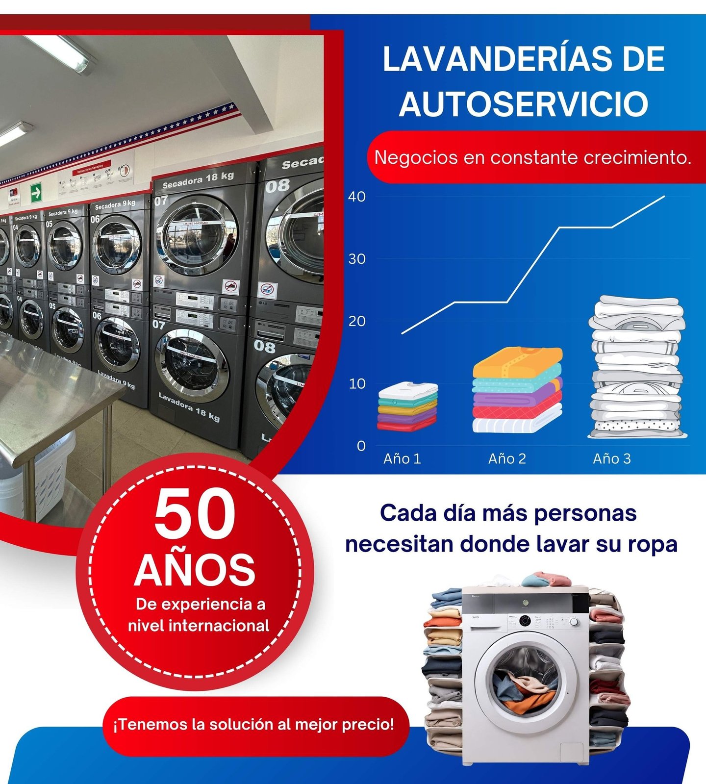 Combo ( La comninación de nuestros dos modelos Tintoreía más la Lavandería de Auto Servicio)